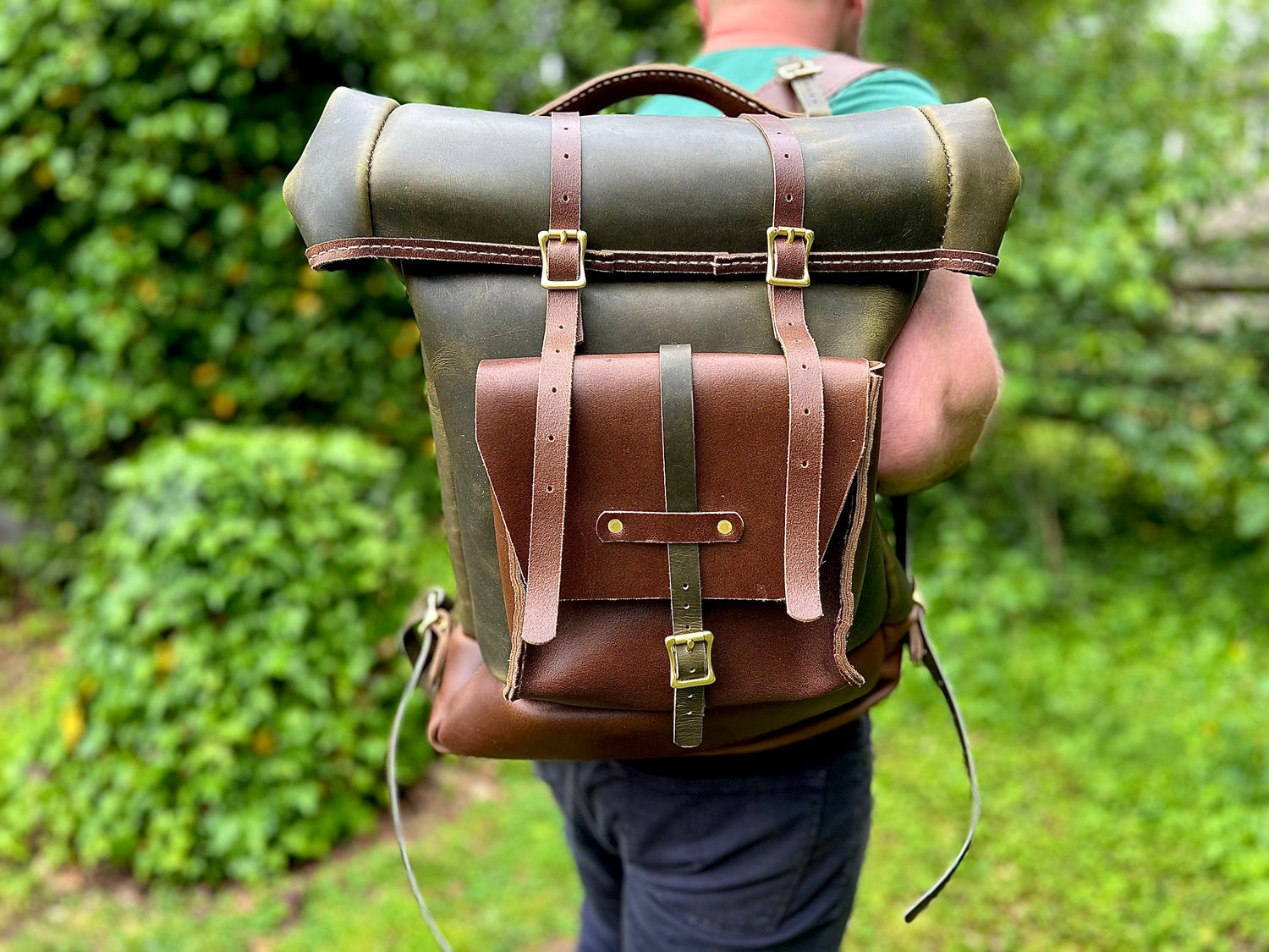 Expedition Backpack in Horween Olive Predator and Natural Waxed Flesh