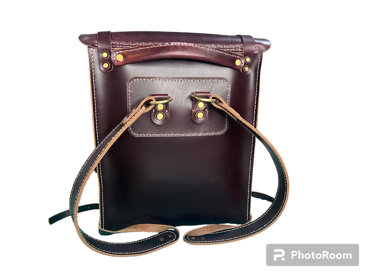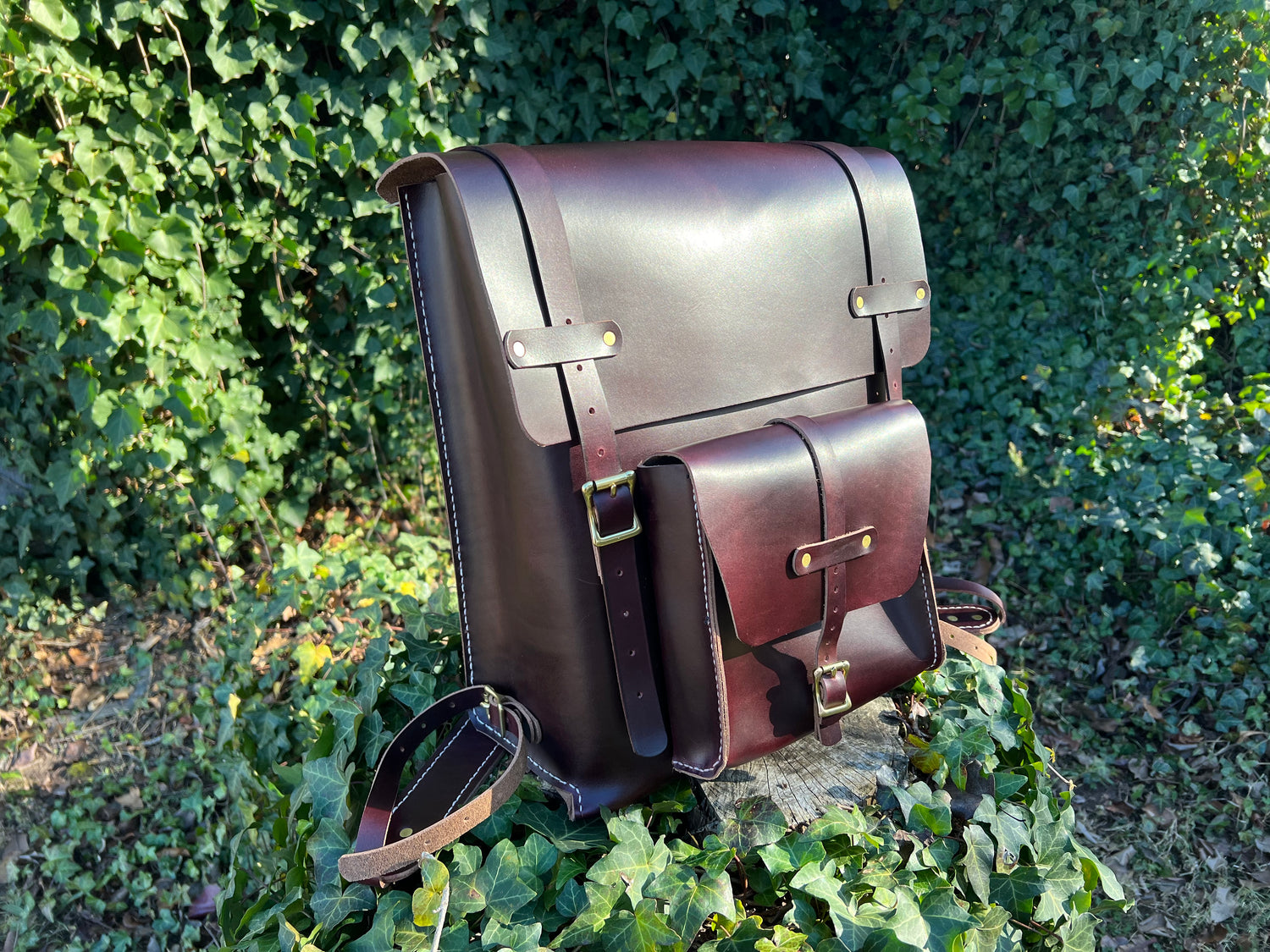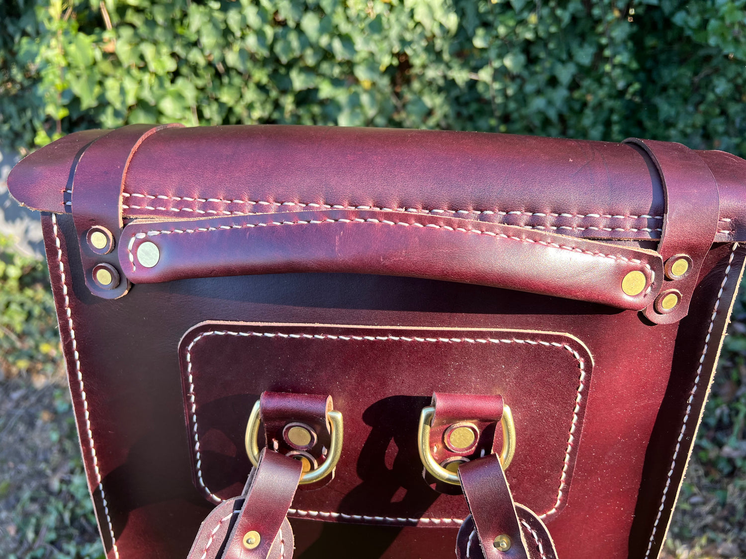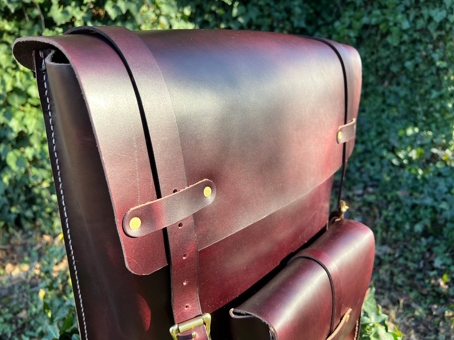 Ritza Tiger Thread, raw brass rivets and roller buckles, unlined.